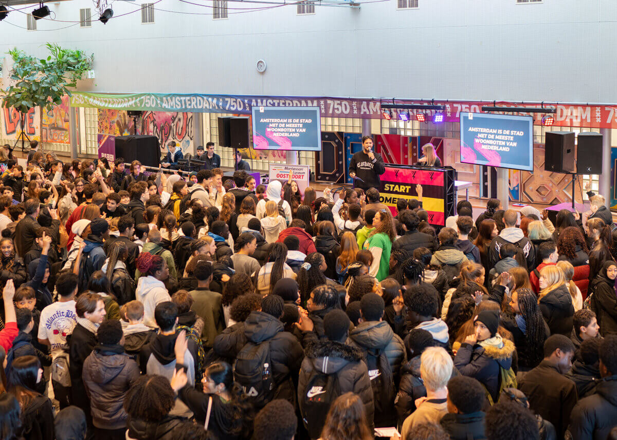 Het jubileumjaar is van start en dat merk je door de hele stad, ook op scholen! In Amsterdam zijn er ruim 60.000 basisschoolleerlingen, 45.000 middelbare scholieren en ruim 150.000 studenten aan het mbo, hbo en wo samen. Ook zij maken deel uit van de viering van Amsterdam 750. Ze krijgen de kans om zich te ontwikkelen, mee te vieren en bij te dragen aan de stad van de toekomst. We geven je een greep uit het programma.