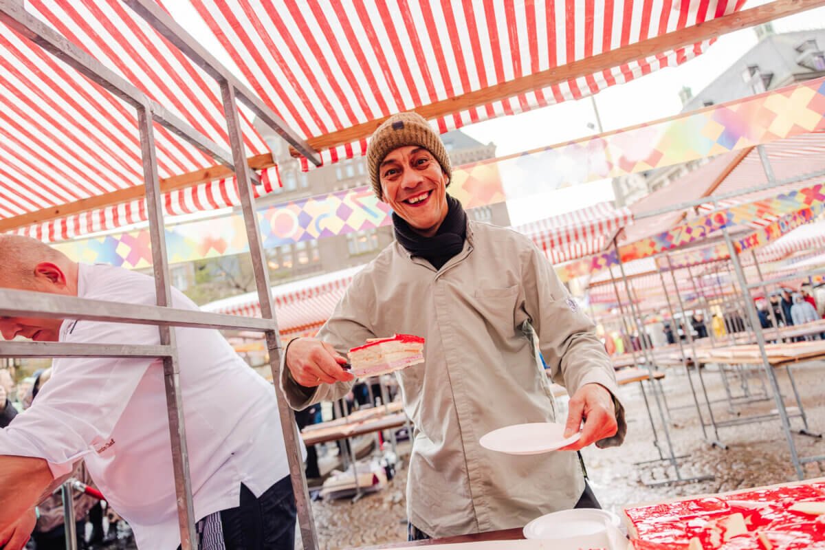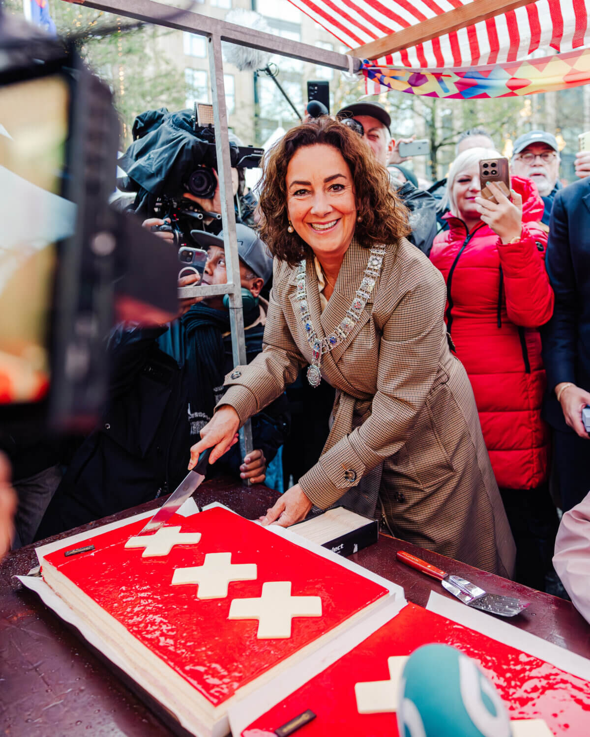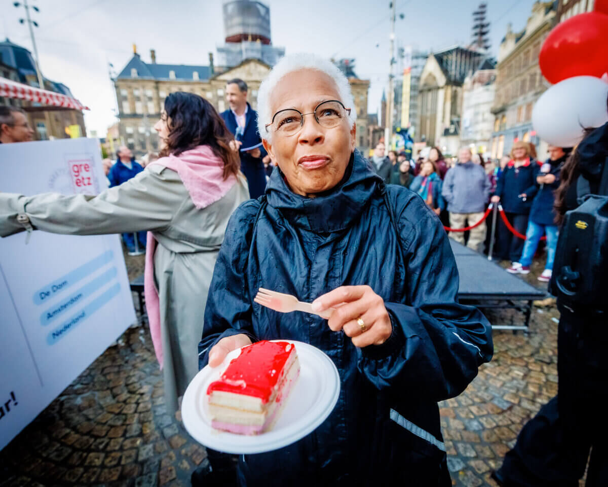 Met het aansnijden van een 75 meter lange taart om 7.50 uur op de Dam is het startschot gegeven van de 750-ste verjaardag van onze stad. Het eerste stuk taart werden aangesneden door Burgemeester Halsema en uitgedeeld aan voorbijgangers en buurtbewoners. De Bijenkorf, Grand Hotel Krasnapolski en de Biz Dam (ondernemers en pandeigenaren) hebben deze mooie actie georganiseerd. Een cadeau aan de stad.