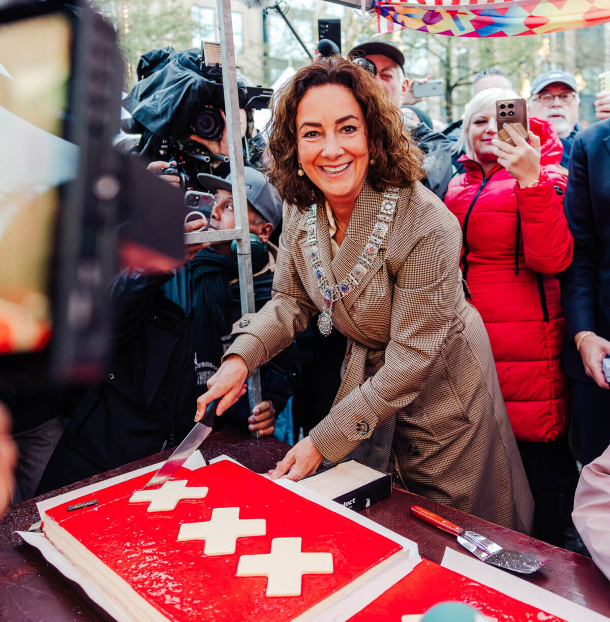 De burgemeesters en het bijna voltallige college trokken de stad in met taart: meer dan 10.000 stukken werden uitgedeeld aan bewoners in verschillende stadsdelen. Op straat klonk muziek, en in de OBA’s genoten jong en oud van een feestelijk programma. De verjaardag van de stad eindigde met een spectaculaire show op het Museumplein, vol bijzondere duetten van Nederlandse artiesten in aanwezigheid van het Koninklijke paar en de Prinses van Oranje. De show werd live uitgezonden op de NPO1.