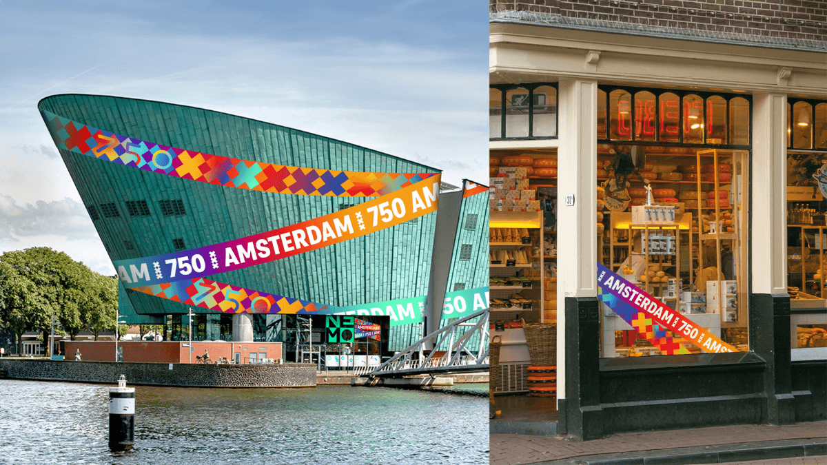 The 750 banner was designed by two Amsterdam-based creative agencies (Liebe Leute and Lowres Creative Studio) and represents a diverse city, unity, and of course, celebration. The 750 banner will be featured on flags and banners visible throughout the city. We also invite everyone to use the banner. Whether you’re an organizer, entrepreneur or just an Amsterdam resident.