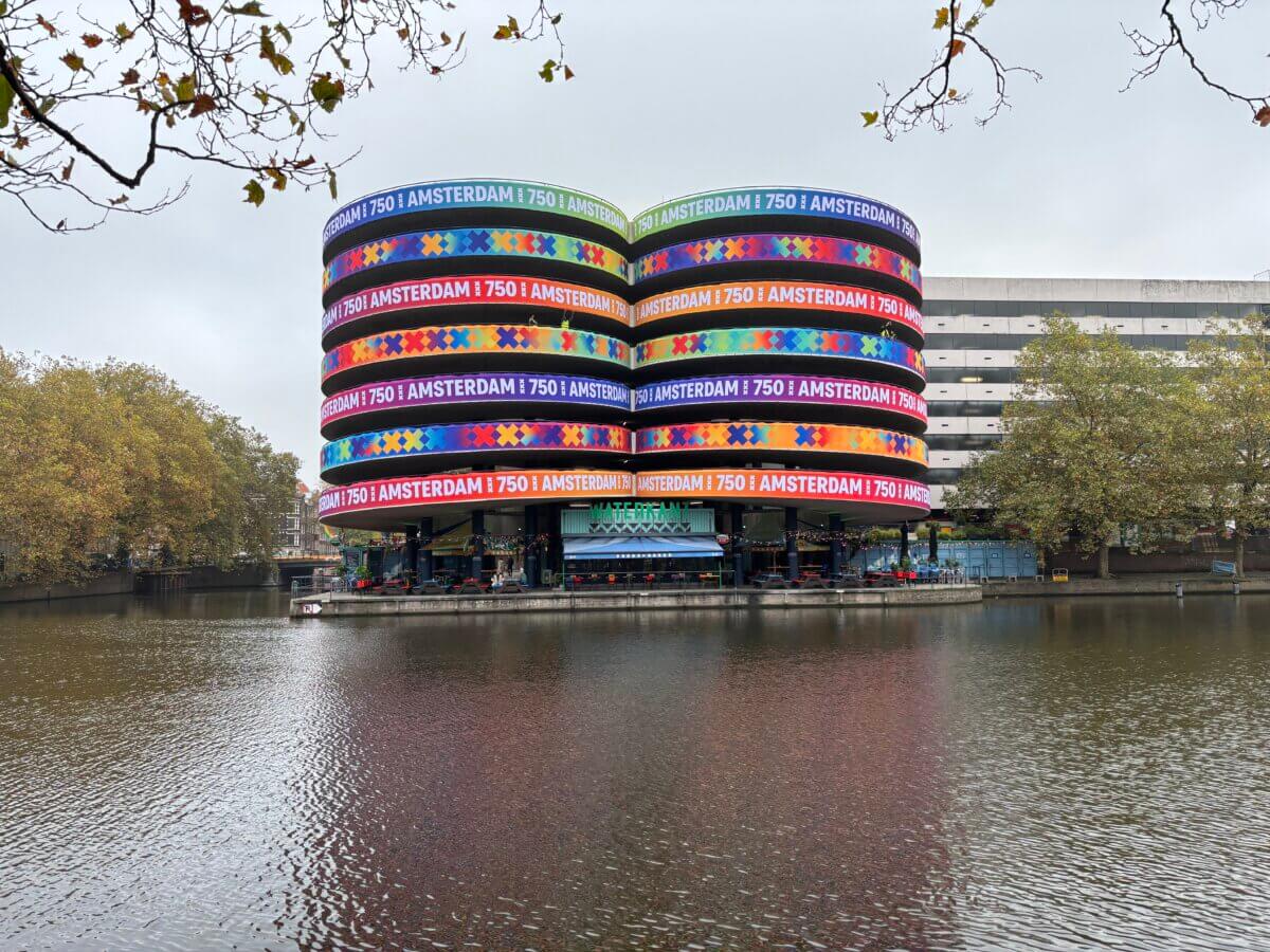 Above Waterkant, a huge 750-themed garland now decorates the parking garage on Marnixstraat, turning it into a festive eyecatcher! This colorful decoration instantly brings extra cheer to the city for its jubilee year. And this is just the beginning, as more 750 decorations will appear in various locations around the city throughout the week. Amsterdam is gearing up for a year full of celebrations and festivities!