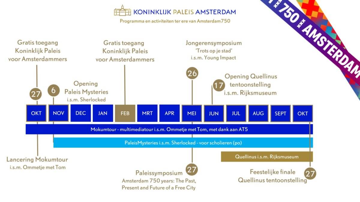 The Royal Palace Amsterdam has played a significant role in the history of the city for centuries. To honor Amsterdam’s 750th jubilee, the palace will host an extensive program filled with activities. Here's an overview of all the jubilee events at the Royal Palace Amsterdam.