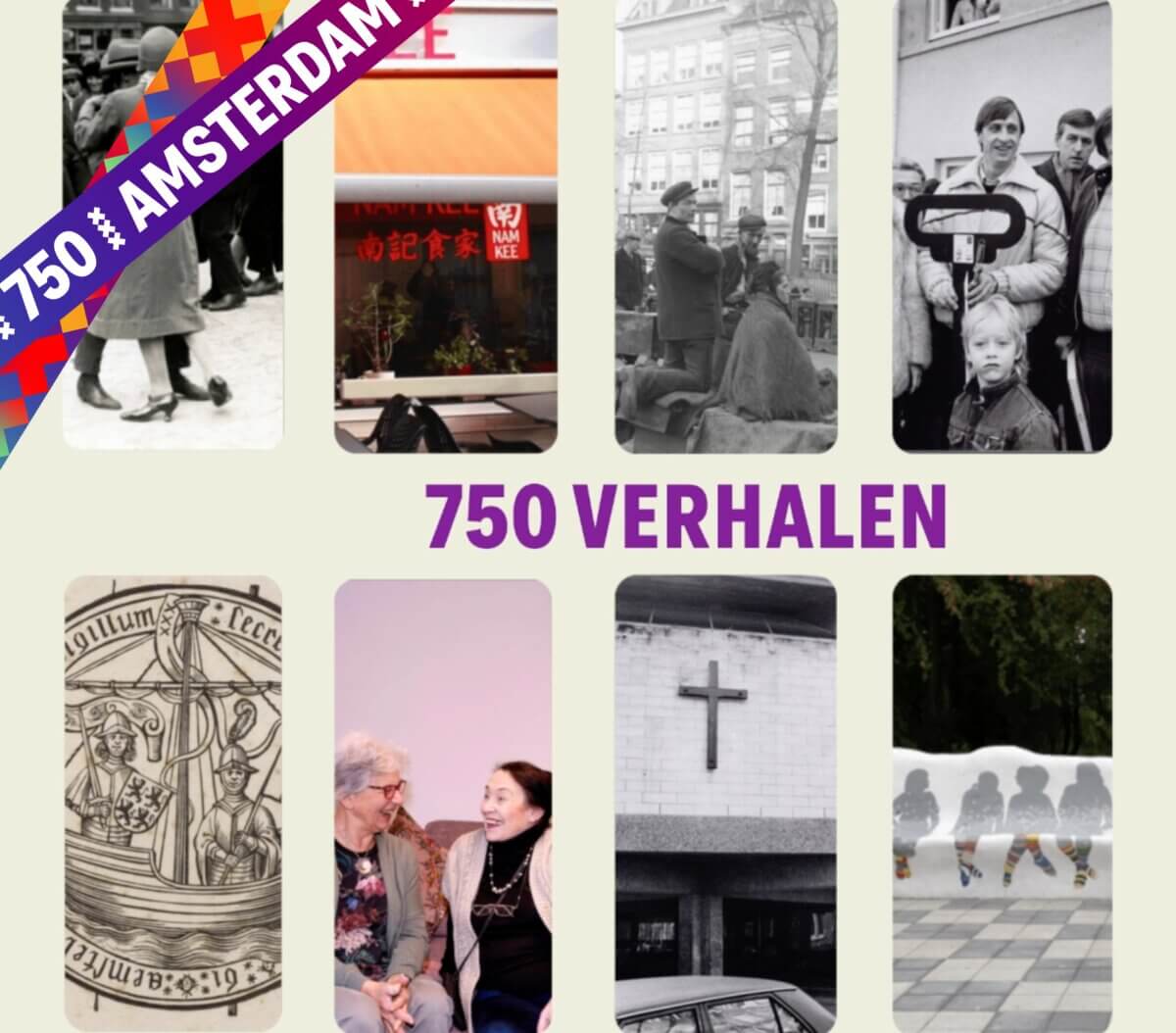 750x Amsterdam. Voor altijd... Verhalen. Ter ere van dit speciale jaar verzamelen we 750 Amsterdamse verhalen. Inspirerende en onverwachte verhalen, die de vele gezichten van de stad tonen. Ze gaan over het verleden, heden én de toekomst. En komen uit elk stadsdeel en Weesp. De verhalen kunnen gebruikt worden als dag- of weekstart of als lesmateriaal bij de vakken geschiedenis, Nederlands of maatschappijleer. Er zijn geschreven-, video- en audioverhalen, maar ook verhalen in de vorm van podwalks en fietstochten.