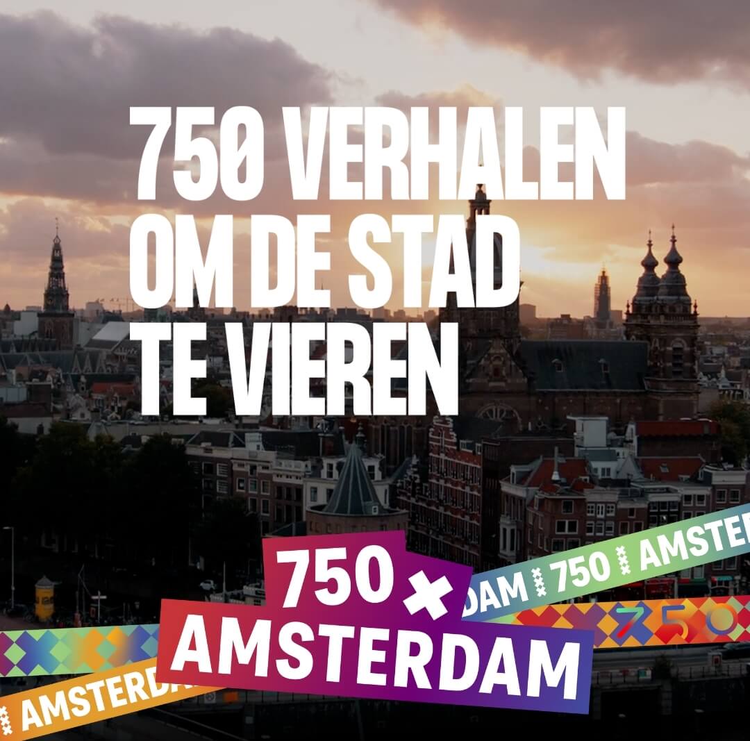 750x Amsterdam. Voor altijd... Verhalen. Ter ere van dit speciale jaar verzamelen we 750 Amsterdamse verhalen. Inspirerende en onverwachte verhalen, die de vele gezichten van de stad tonen. Ze gaan over het verleden, heden én de toekomst. En komen uit elk stadsdeel en Weesp. De verhalen kunnen gebruikt worden als dag- of weekstart of als lesmateriaal bij de vakken geschiedenis, Nederlands of maatschappijleer. Er zijn geschreven-, video- en audioverhalen, maar ook verhalen in de vorm van podwalks en fietstochten.