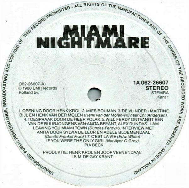 Op 4 juni plaatsten 51 prominente Nederlanders – onder wie parlementsleden, protestante en katholieke geestelijken en voorvechters van burgerrechten – een paginagrote advertentie in de Miami Herald met de tekst: ‘Wij, uit het land van Anne Frank, weten waartoe vooroordelen en discriminatie kunnen leiden.’ De Stichting Vrije Relatierechten wilde nog een advertentie plaatsen, ditmaal in Time Magazine. De rekening hiervoor was 120.000 gulden. Om dit geld op te halen werd op 8 oktober 1977 een benefietconcert georganiseerd in het Amsterdamse Concertgebouw, met de naam Miami Nightmare. Het benefietconcert was een succes. Tv-icoon Mies Bouwman presenteerde de hele avond. Er waren optredens van onder anderen Pia Beck, Martine Bijl, Jos Brink, Manfred Langer, Sylvia de Leur, Robert Long en Albert Mol. Bouwman wilde eigenlijk rond drie uur ’s nachts de avond afsluiten, maar het publiek bleef maar om toegiften vragen. Het concert werd uiteindelijk om vijf uur ’s ochtends afgesloten met het zelfgeschreven protestlied ‘Luister Anita’ van de Zangeres Zonder Naam, waarin ze kritiek uit op Bryant en het aanwezige publiek toezingt.