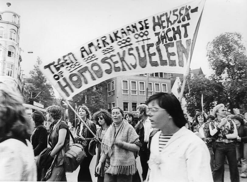 De eerste lhbtq+-protestmars in Amsterdam werd georganiseerd op 25 juni 1977 vanuit de verontwaardiging over de uitslag van een referendum in Florida eerder die maand. Een lokale verordening in Miami-Dade County die discriminatie op grond van seksuele geaardheid bij huisvesting of werk verbood werd teruggedraaid. Tot 1977 kende Nederland geen grote Gay Prideprotestmarsen, zoals de Amerikaanse, maar door deze ontwikkelingen in de VS werd de lhbtq+-beweging steeds zelfbewuster en politieker.