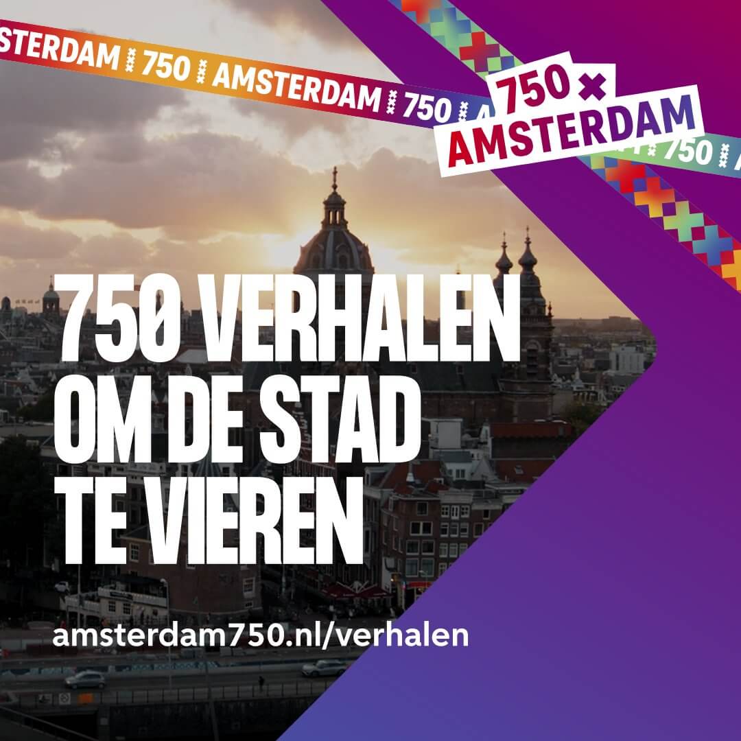 Amsterdam. Voor altijd... verhalen. Voor de viering van het jubileumjaar brengen we 750 Amsterdamse verhalen samen onder één digitaal dak. Lezen, kijken en luisteren, maar ook doen. Vóór en dóór Amsterdammers en iedereen die de stad in het hart draagt.