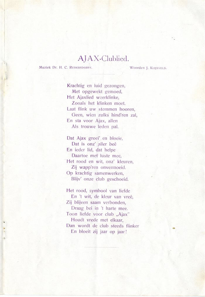 D Knegt schreef als hoofdredacteur van het clubblad de tekst van de Ajax Marsch. De Belgische vluchteling E. Painparé componeerde de melodie.
