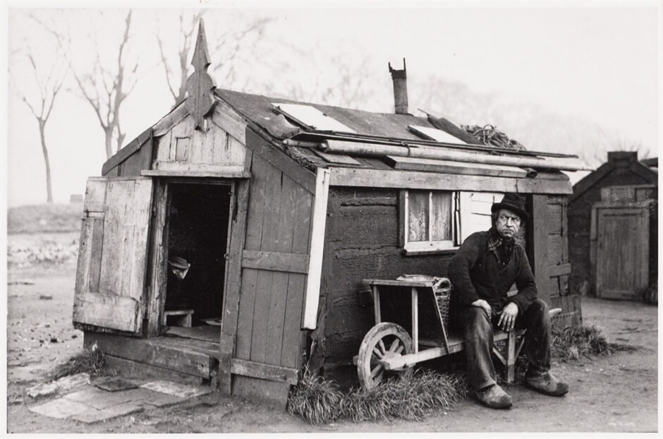 1918. Piepklein huisje van een palingvisser aan de Laanweg. De palingvissers uit Volendam woonden door de week in Amsterdam Noord en gingen in het weekend naar huis.