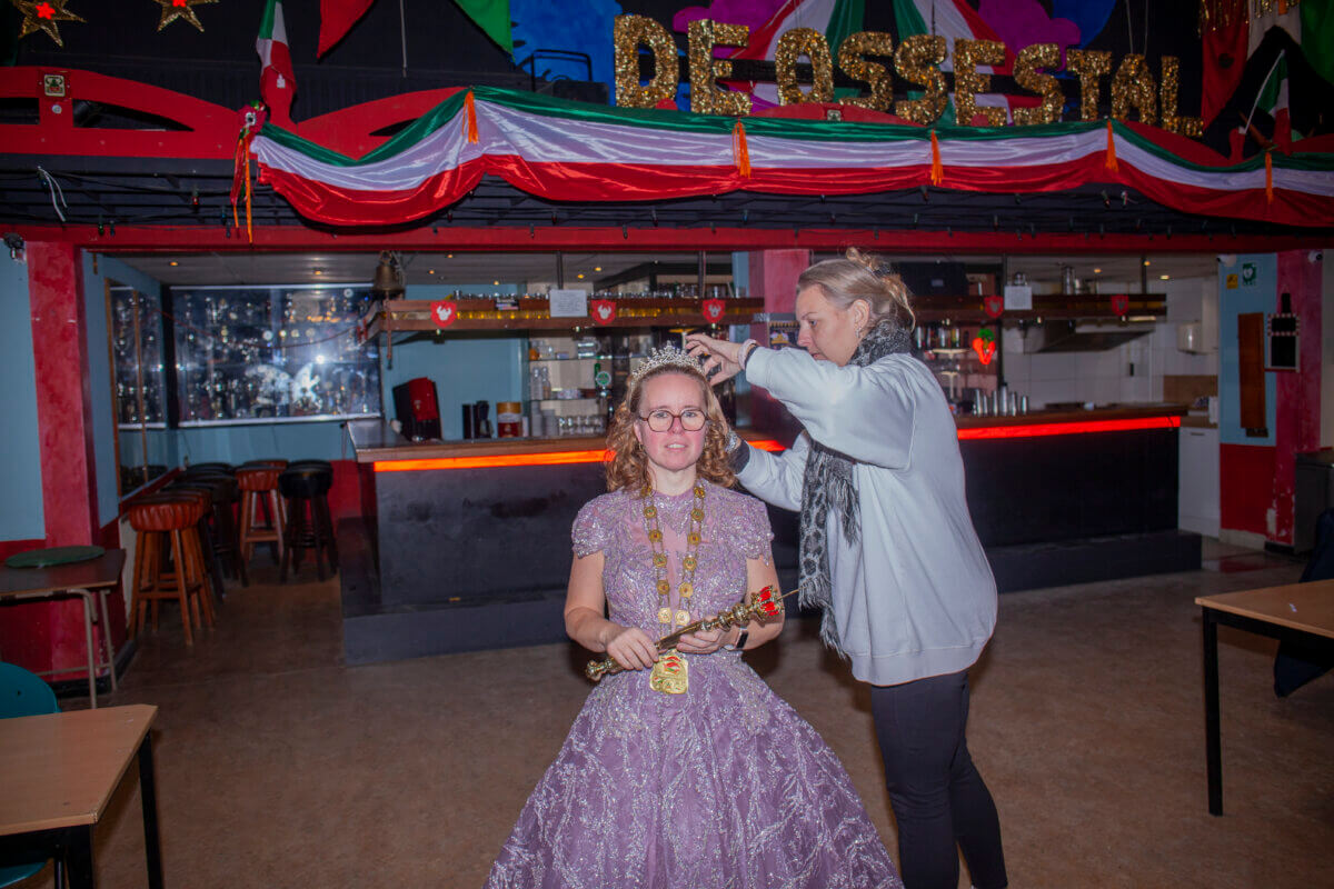 Dit jaar zit er, ondanks die feestelijke herverkiezing, ook een zwart randje aan die prinsessentitel. Villerius hoeft het stokje volgend jaar niet over te dragen, want ze is de allerlaatste Prinses van de vereniging. Na dik een halve eeuw bouwen, dansen, drinken, lief en leed delen, houdt het feest op. Carnavalsvereniging d’Osseknarren stopt ermee. ‘Het doet echt wel pijn. Eerst de stadsoptochten, toen de optocht in Osdorp, en nu ook de Osseknarren. Ik was tien toen ik hier voor het eerst binnenliep, ik ben er opgegroeid. Deze mensen zijn mijn familie. Ik krijg er wéér een brok van in mijn keel als ik erover praat’, zegt Villerius.