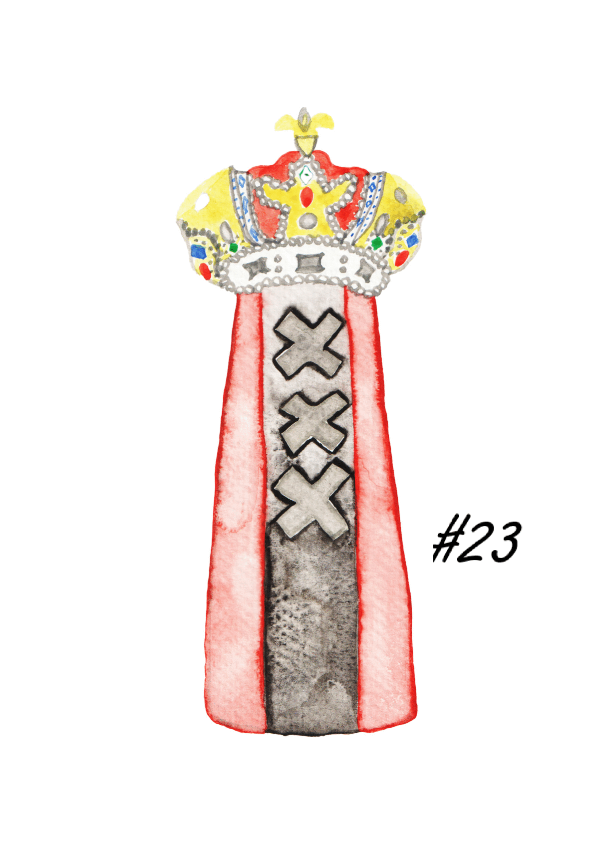 Above the three crosses stands a large crown. Its origins are more obvious. In 1489, the lord of the land, Maximilian of Austria, granted Amsterdam the right to display the imperial crown of the Holy Roman Empire above the coat of arms with the three crosses. He did this in gratitude for the city’s support. As is customary with coats of arms, a lion flanks the crosses, bearing the coat of arms.