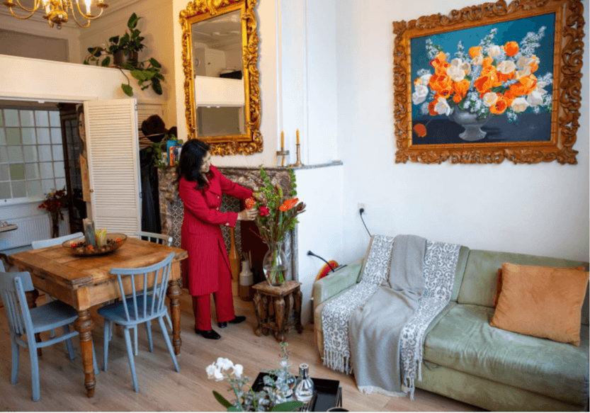 “Ik trouwde met een Nederlandse man, maar voordat we naar Nederland verhuisden, woonden we eerst in Colombia, Bolivia, El Salvador, Canada en Amerika. De huizen waarin we woonden, waren gigantisch groot. Er waren ruimtes die we nooit gebruikten en ik had echt personeel nodig om alles schoon te houden. Uiteindelijk belandden we in 2004 in Nederland. We woonden eerst in Vreeland en kochten daarna een huis in Nederhorst den Berg. De architect had zich duidelijk laten inspireren door de Amsterdamse grachtenpanden. Het leek wel of hij een stukje uit Amsterdam had geknipt en het naar de weilanden had gebracht.