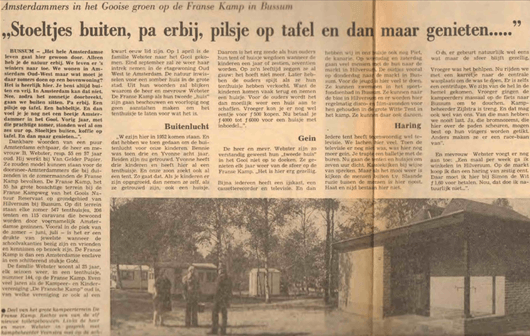 Na de Tweede Wereldoorlog en met de komst van de groeiende welvaart veranderde er veel. Op het terrein van GNR verschenen plaatsen waar zomerhuisjes mochten worden gebouwd die in het najaar weer weggehaald werden en in de opslag bewaard werden voor het volgend voorjaar. Het recreatiepark De Franse Kamp in Bussum is zo ontstaan. Maar ook in Blaricum aan de Oude Naarderweg, tegenover voorheen revalidatiecentrum ‘De Trappenberg’ en achter wat nu restaurant ‘De Goede Gooier’ is, aan de rand van bos en heide, stonden er ook een aantal. Deze werden hoofdzakelijk bewoond door Amsterdammers. Omdat het toenmalige Amsterdamse Kinderziekenhuis ( wat later De Trappenberg werd) er gevestigd was, was er ook al een bushalte. Zodoende konden de kostwinners hier vandaan makkelijk forensen naar Amsterdam. De sanitaire voorzieningen waren niet om over naar huis te schrijven, maar het gevoel van in de vrije natuur te leven in plaats van de grote stad, vergoedde veel, zo niet alles.