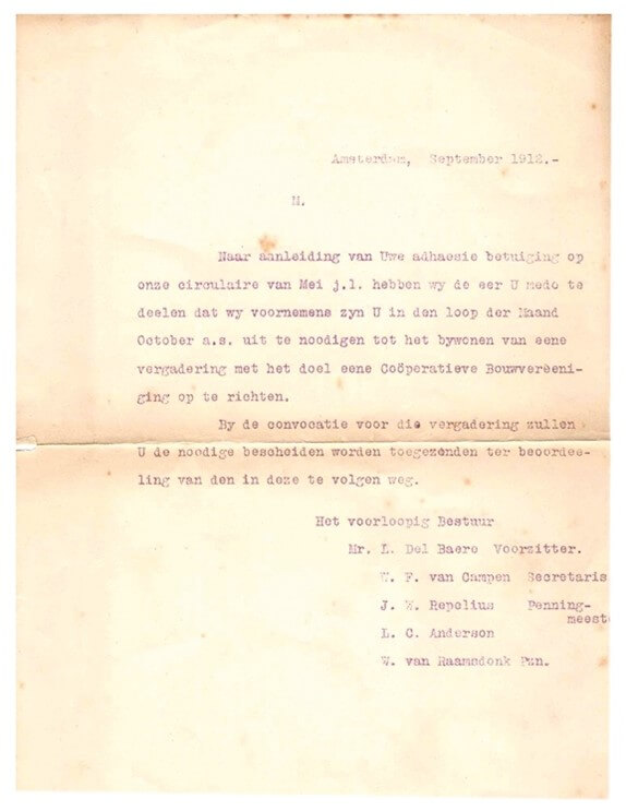 Aan de wieg van de ‘Coöperatieve Bouwvereeniging van het District Amsterdam der Vereeniging “Eigen Hulp” 1911 – 1913