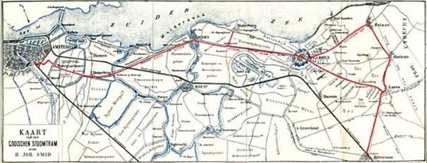 De lijn werd gefaseerd opgeleverd. Beginnend in 1881 werd de laatste lijn een jaar van Hilversum, Laren, Blaricum en Huizen geopend. De stoomtram deed ruim twee uur over de 26 kilometer van Amsterdam naar Laren. Dat kwam doordat de tram over grote stukken stapvoets reed en omdat de tram tot 1906 overal gestopt kon worden om in en uit te stappen.
