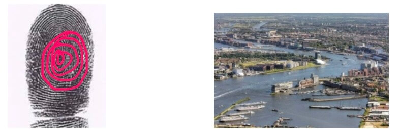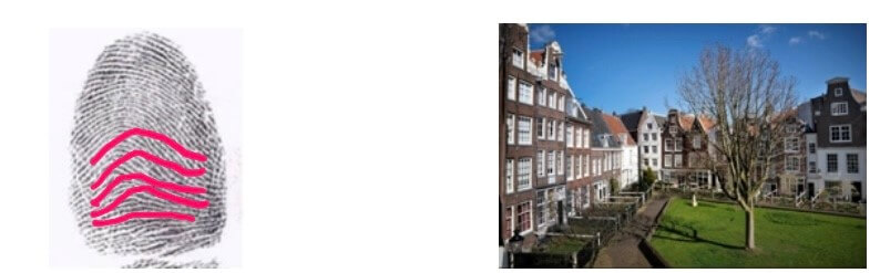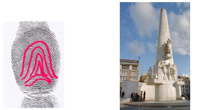 Ik heb de stad gelezen met dit gegeven en laat de overeenkomsten zien tussen een hand en de stad. Voor de vier huidpatronen (lus, boog, tent, krans) heb ik “landmarks” gezocht en bij de de primaire handlijnen, Levenslijn, Hoofdlijn en Hartlijn zijn het onderdelen van de stad in beweging geworden.