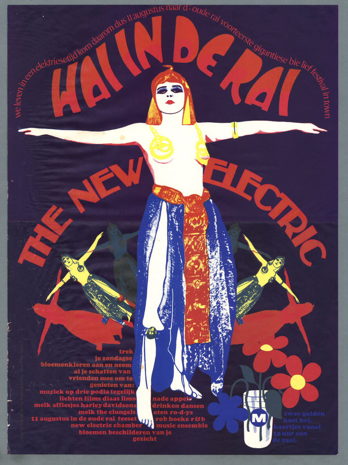 ‘We leven in een elektriese tijd. Kom daarom dus 11 augustus naar d’-oude rai voorteerste gigantiese bie lief festival in town’, luidde de wervende tekst op het affiche. Motto van het grote liefdesfeest was ‘Hai in de Rai’. Dat wordt niks, dacht de gemeente aanvankelijk, bij monde van Hans Wiedeman, normaliter organisator van sportinstuiven. Hij had een jaar eerder al een grote ‘beatavond’ willen organiseren, maar dat was mislukt bij gebrek aan een geschikte zaal. Vooraf zei hij tegen het Algemeen Dagblad: ‘Het is toch te gek dat in ieder dorp waar toevallig een flinke schuur staat zoiets wel kan en niet in Amsterdam omdat er geen grote zaal beschikbaar is. […] Nu kregen we de kans in de oude Rai, waar niet veel schade aan te brengen valt.’ Op z’n hoogst 1500 à 2000 jongeren werden verwacht – maar liefst 8000 kwamen er.