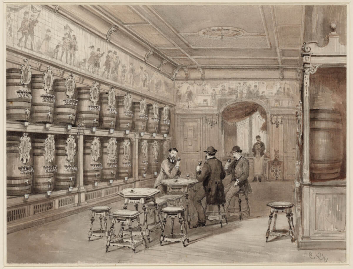 De Amsterdammers dronken bier niet alleen thuis, maar ook in de herbergen en taveernes die de stad rijk was. Hier komt ook de oorsprong van het Engelse woord ‘pub’ vandaan, wat een afkorting is van ‘public house’. Deze ‘publieke huizen’ waren eigenlijk het verlengde van de huiskamer: plaatsen waar bier werd gedronken, je iets kon eten en kon slapen.