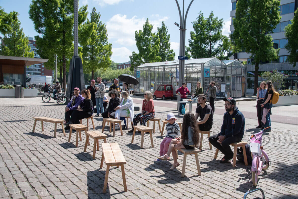 Na de eerste Klokslag op Plein ’40–’45 sprak ik Mathieu Daniel Polak over de muziek die hij had gespeeld en over het instrument: de beiaard, of het carillon. Ik noem het graag de klokkentoren. Mathieu bood toen aan wel iets te willen spelen als ik dat zou willen componeren. Dat deed ik graag, want ik hou van het horen van klokkenspel, en hoe moeiteloos het mengt met het alledaagse leven. Het schept ook een gevoel van perspectief. Net als hoe je op een uitkijkpunt soms even ver kunt kijken, zo kun je met het horen van kerkklokken ver horen. Toen ik de compositie maakte, stelde ik me voor hoe iedereen die de muziek zou horen met iets anders bezig is, hoe we allemaal op weg zijn. Vandaar de titel. Mathieu heeft het stuk gespeeld bij de volgende Klokslag, en speelt het nu door het land.