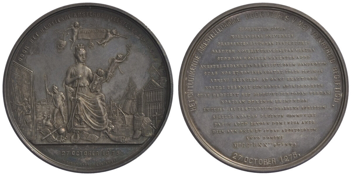 Misschien kunt u zich het 700-jarig bestaan van Amsterdam in 1975 nog wel herinneren, met evenementen als SAIL Amsterdam en de manifestatie in de RAI. Honderd jaar eerder, in 1875, werd de verlening van het tolprivilege echter al beschouwd als een ‘scharnierpunt’ in de geschiedenis van de stad. Reden voor een herdenkingsfeest dus.