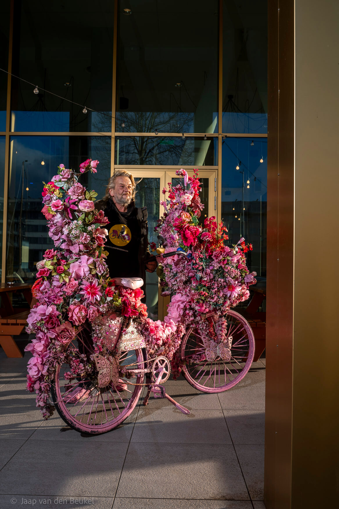 ‘Het irriteert me. Ik zie vooral de nieuwe, rijke Amsterdammers die klagen; ze noemen me een eikel en mijn fietsen een tourist trap. Maar ik kwam hier ook als toerist, ik bleef, en nu ben ik volgens velen toch een waardevolle toevoeging voor de stad? Het probleem ligt natuurlijk bij Schiphol. De gemeente heeft vijfhonderd bankjes verwijderd, maar Schiphol blijft groeien. Zelf vlieg ik nooit meer. Vanwege het milieu, maar ook de instant gratification ervan. Vliegvelden vermoorden onze wereld.’