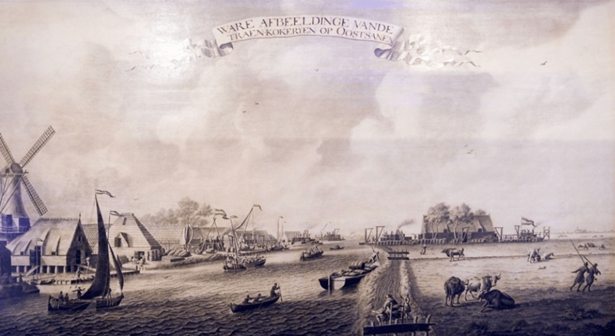 Ver voordat de eerste steen van onze straat werd gelegd, en ook voordat Jacob werd geboren, was er al wel bedrijvigheid hier te vinden. Een niet zo frisse bedrijvigheid. Op enige afstand van Amsterdam, zodat de stadsbewoners geen last van de stank hadden, stonden in onze buurt traankokerijen. Tuindorp bestond nog niet, de Oostzanerdijk grensde aan het IJ, dat direct toegang had tot de Zuiderzee. Aan de Oostzanerdijk, nu verscholen achter een grote haag, lag de Oostzaner Overtoom. Een plek waar goederen van de schepen over de dijk werden gehesen om verder hun weg in Noord Holland te vinden. Daar kwamen ook de schepen met walvisblubber aan. Bij Spitsbergen en in de Noordelijke IJszee werd er gejaagd, de walvissen werden aan boord verwerkt en de walvisblubber werd in grote vaten naar Nederland gevaren. Van 1660 tot eind achttiende eeuw voeren elk jaar zo’n 30 schepen heen en weer. Walvisblubber Aan de Oostzanerdijk en langs het oude veenriviertje het Twiske werd uit de blubber de dure levertraan gekookt. De stank die deze industrie veroorzaakte was immens.