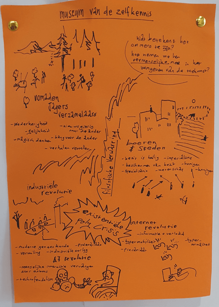 John wordt wakker. Vandaag viert Amsterdam haar duizendste verjaardag. En ik ben zo blij dat we dat samen kunnen doen. Ik ben ambtenaar van de Oosterburg Grachtbuurt. Ik beheer het buurtbudget en ik ken alle bewoners. De Oosterkerk is een herberg waar je kan zijn. Je kan er rusten. Er liggen lichtbedden. Maar er zijn ook ronde dialoogbankjes. Muziekhoekjes en kaarthoekjes. Vorig jaar is in Dialoog besloten een grote buurtkeuken te plaatsen. De beste kokers uit de straat koken regelmatig voor de hele straat. De mens is een herberg, staat boven de deur. Je loopt erdoor naar binnen. Als ik de herberg binnen loop, voel ik me al een ander persoon worden. Ik mag er volledig zijn. Het is fijn dat ieder die binnen is, dezelfde mentaliteit heeft. En als ik even zin heb om alleen te zijn, dan ga ik gewoon niet naar binnen. Of doe ik een tukje in de rustruimte. Alles wat ik als ambtenaar regel in deze buurt, bepalen we in Dialoog in deze herberg. Dan beschrijven we eerst hoe we zelf als herberg zijn. Wie hier op bezoek is gekomen in onze binnenwereld. En wat we daarvan leren en willen in onze buitenwereld. In de binnenwereld van buurvrouw Roos was een hoop aan de hand afgelopen week. Ze voelde zich vastzitten. We hebben toen na het eten een korte danssessie gedaan. Dat leek haar te helpen. Ik voel mee met de buurtgemeenschap. We kennen elkaars binnenwereld en verlangens. De verlangens delen met elkaar in de herberg. Dan proberen we altijd meteen in het klein aan dat verlangen te voldoen. Bron verlangde gisteren aan wat vrolijkheid. Toen hebben we hem allemaal een grap verteld. Santy wilde gerechtigheid voor haar kapotgelopen rozen. We hebben nieuwe rozen gepland. Franka verlangde ernaar een leider te zijn. Zij mocht de herberg die avond afsluiten. De cultuur die we hebben is dat we voor elkaar hetzelfde wensen als voor onszelf. We doen dus altijd ons best elkaars verlangen serieus te nemen. En ermee te experimenteren. Daarbij delen we elke eerste dag van de maand onze verlangens voor de groep. En hebben we een dialoog voor welk verlangen we ons in gaan zetten.