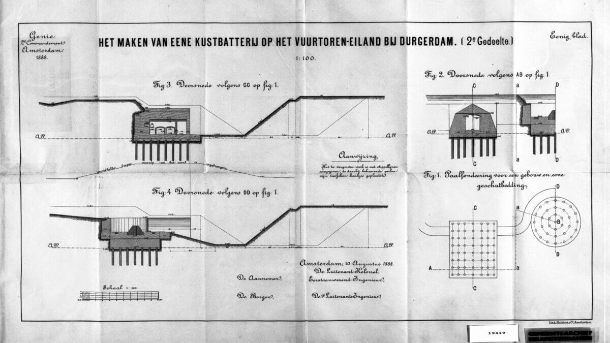 Op het Vuurtoreneiland ten oosten van Amsterdam ligt de Kustbatterij bij Durgerdam. Vanaf deze militaire versterking moesten de kust van de Zuiderzee en de Amsterdamse haven beschermd worden tegen binnenvarende vijanden. De kustbatterij werd in 1886-1887 aangelegd en is één van de oudste werken van de Stelling van Amsterdam.