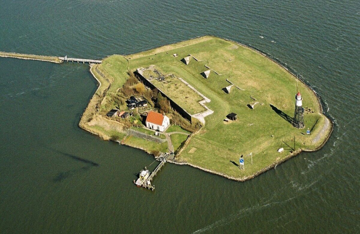 De geschiedenis van het eiland waarop de Kustbatterij bij Durgerdam ligt, gaat meer dan drie eeuwen terug. In 1701 werd dit ‘vuurtoreneiland’ aangelegd als onderdeel van de kustverlichting langs de Zuiderzee. Het eiland werd aangeduid als ‘Lantaarn van IJdoorn’, naar de tegenoverliggende polder. Bij Enkhuizen en Marken werden soortgelijke lichtbakens gebouwd.