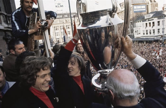 In 1965 ontsnapte Ajax nog net aan degradatie. Daarna bracht Rinus Michels met onder meer Johan Cruijff en Piet Keizer spectaculair en beweeglijk voetbal. Ajax won drie Europacups op rij en veroverde voor het eerst in de clubgeschiedenis de Wereldbeker. In korte tijd veroverde totaalvoetbal de voetbalwereld. Het was een mix van Nederlandse ontwikkelingen en internationale invloeden, via voetbaltradities van buitenlandse spelers en trainers. Totaalvoetbal was dus niet exclusief Nederlands, maar zorgde wel voor de internationale doorbraak van het Nederlandse voetbal, vooral van Ajax.