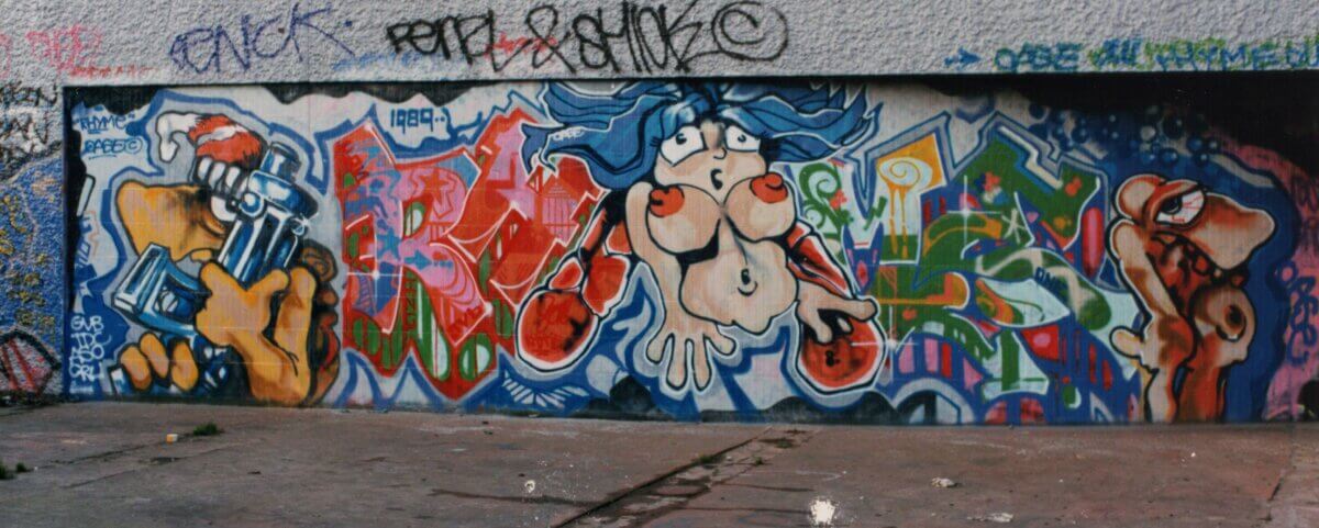 Als we het hebben over Amsterdamse graffitigeschiedenis zijn er weinig plekken die meer historie ademen dan het Mr. Visserplein. In de jaren ’80 van de vorige eeuw zag het plein er totaal anders uit; de auto- en voetgangerstunnel waren nog in gebruik en konden van bovenaf bekeken worden. In 1985 werden de voetgangersonderdoorgangen met grote ijzeren hekken afgesloten en ontstond er ongewild een graffiti-vrijplaats dat uit zou groeien tot een internationale trekpleister voor graffitischrijvers. Deze belangrijke plek voor experiment en creativiteit zou tot 2003 bestaan, waarna kinderspeelparadijs Tunfun er zich vestigde. Zo was het plein jarenlang op graffiti gebied een belangrijkste plekken in Nederland.