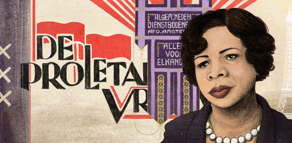 “Kort daarna groeit ze door tot voorzitster van de vakbond. Ze is de eerste gekleurde vakbondsvrouw van Nederland.”
