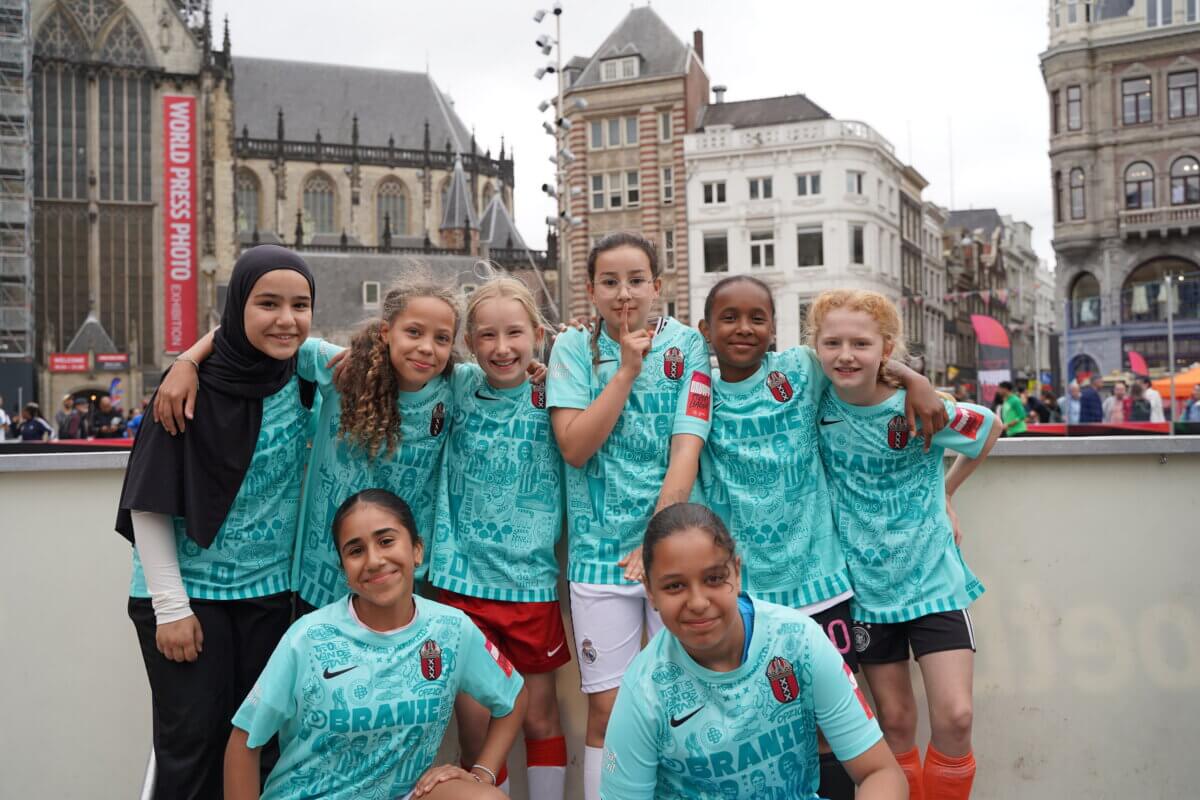 De grote finale voor onszelf was de presentatie van de shirts voor de start van het toernooi op 5 juli op de Dam. Daar kwam al het kleurrijke werk samen en werden de prachtige en direct begeerde shirts gedragen door alle jongens en meiden uit elk stadsdeel. Wethouder Sofyan Mbarki opende de finale en droeg al snel zijn groene shirt van Nieuw-West. Zo was Zuid oranje, Zuidoost fel geel en Weesp blauw. De details op de shirt waren gelijk onderwerp van gesprek voor de kinderen, de ouders en meegekomen fans die graag ook een shirt hadden gewild.