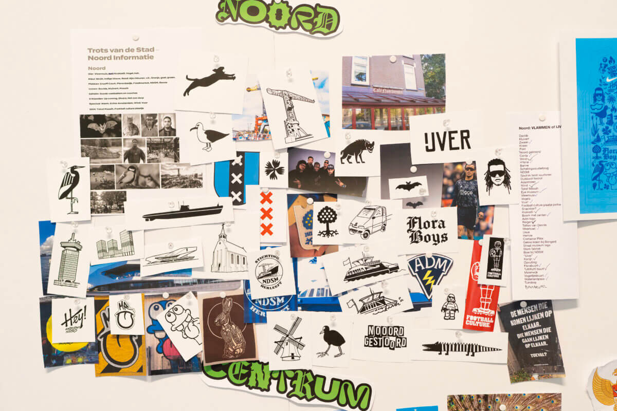 Voor een goed ontwerp doe je eerst onderzoek. Daarvoor zijn we de straten en de pleinen opgegaan, bij winkels en mensen thuis, om Amsterdammers te vragen wat er op hun shirt moet komen te staan en deze gesprekken hebben we vastgelegd op video. Gesprekken over kleur, teksten, iconen, idolen, gebouwen, dieren, of soms gewoon over te weinig parkeerplekken – kon ook. Deze visies hebben we vormgegeven als een collage van allerlei elementen op de shirts van elk stadsdeel. Het gaat over identiteit en verbintenis tussen en met elkaar. Dat vertaalt op 8 shirts: Noord, Oost, Zuid, Zuidoost, Weesp, West, Nieuw-west en natuurlijk het Centrum.
