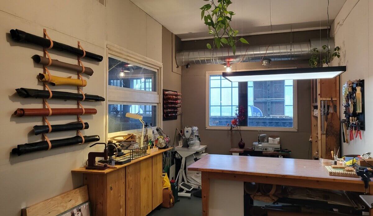Vandaag bevindt mijn atelier zich in de historische NDSM-loods. Waar ik tassen ontwerp met aandacht voor vakmanschap en duurzaamheid. Mijn doel: producten maken die mensen niet alleen dragen, maar koesteren – tassen die verhalen vertellen en van generatie op generatie kunnen worden doorgegeven.