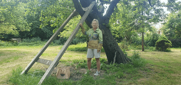 Voordat Poels zich begon in te zetten voor de Lutkemeer, fietste ze er wel eens langs. Drie jaar geleden stapte ze voor het eerste af en maakte kennis met de Boterbloem en het vermaarde perensap – van de oudste perenboom van Amsterdam. De imposante reus werd bij de drooglegging van het Lutkemeer in 1870 geplant en geeft nog altijd sappig fruit. “Stel je eens voor, die boom is net zo oud als Vincent van Gogh! Je snapt dat ik steeds meer betrokken raakte bij dit bijzondere stukje Amsterdam.”