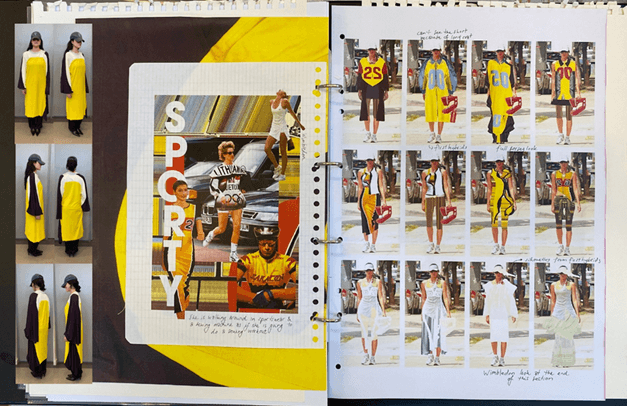 Een moodboard met roze kersen, little pony’s en plastic poppen, paspoppen met schuine kragen, ritsen op onverwachte plekken en een jasje van doorzichtig plastic met geborduurde wolkjes. Op een andere paspop een jasje met een zwarte doorzichtige slurf aan de voorkant. Of is dat de zijkant? Als je het atelier van de afstudeerders van het Amsterdam Fashion Institute binnenkomt, krijgen je ogen geen minuut rust. De afstudeerders hebben zelf ook geen rust want ze moeten binnenkort, tijdens de ToekomstTiendaagse, afstuderen en dan 6 stukken presenteren.