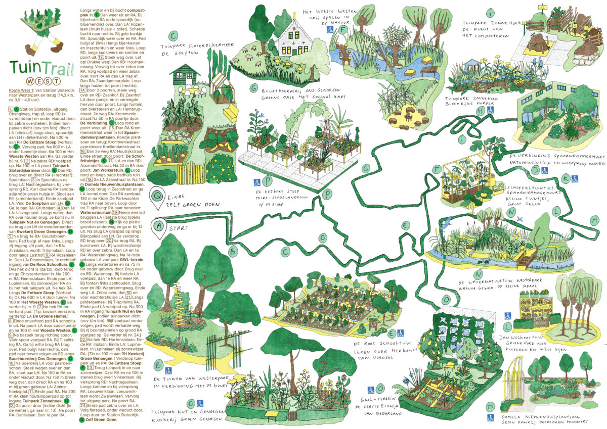 TuinTrail West is mogelijk gemaakt door Stichting Amsterdam 750, en met liefde uitgezet door een bevlogen groepje vrijwilligers en zzp’ers. Sinds 2021 creëren ze wandelroutes (Oost en Noord) en speurtochten (Oost en West) met luisterverhalen door groen Amsterdam. Meer informatie? Kijk op www.tuintrail.amsterdam.