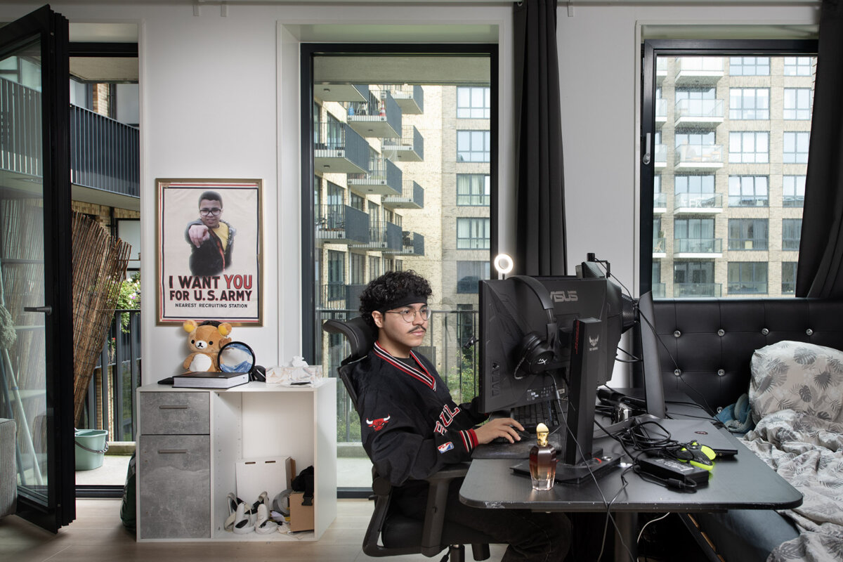 Toen ik de vraag kreeg om een verhaal te maken in het kader van 750 jaar Amsterdam, greep ik dit kader aan om de familie Zafzafi weer op te zoeken. Nadat ik vader Ahmed thuis had opgezocht, bezocht ik Yassine in zijn eigen appartement. Letterlijk één straat bij zijn ouders vandaan. Hij onthaalde me in zijn eigen optrekje van zo’n 40 m², waar de aftershave nog even was rondgespoten voor ik binnenkwam. Yassine bood me een glas water aan en hij vertelde me dat hij na zijn mbo-studie aan het MediaCollege, nu een hbo Creative Business deed.