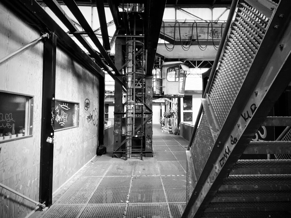 Het ritme van de klinken klonk als muziek in mijn oren. Dat mis ik nog weleens hoor. Nu klinkt de werf heel anders. Het is ook geen werf meer natuurlijk. Na de teloorgang van de werf heeft het nog jarenlang braakgelegen. Maar NDSM heeft zichzelf opnieuw uitgevonden eigenlijk. Nu leeft het hier wel weer dankzij de festivals, de vlooienmarkten, de cafés. Er gebeurt hier zoveel! Ook deze loods is helemaal opgebloeid met de kunststad en de kunstenaars die in mij huizen. Al die dingen die hier ontstaan. Waanzinnig!