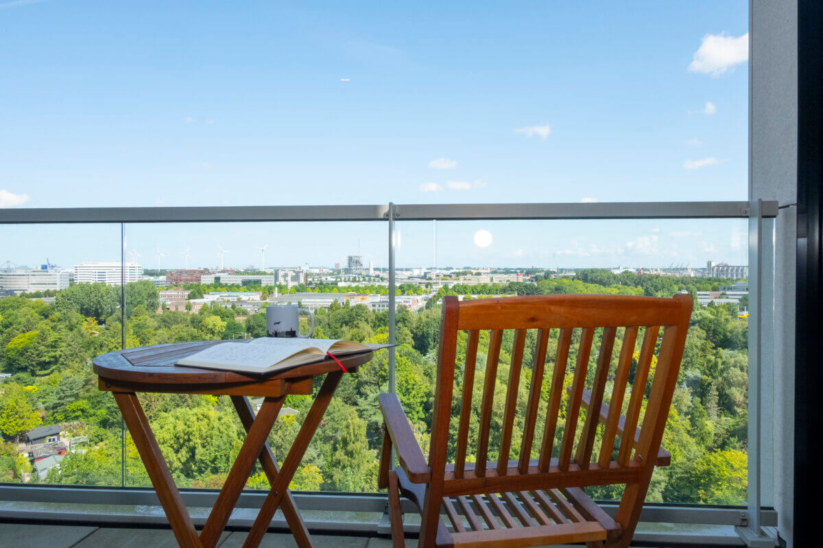 Of haar bezoeker niet op de rommel en de dozen wil letten, zegt ze verontschuldigend. Een paar weken geleden verhuisde Madalina in dit nieuwe gebouw van gestapelde en verspringende kubussen van de vijfde verdieping naar de elfde. Nadat de relatie met haar Catalaanse vriend strandde, bleek het appartement te groot voor haar alleen. Ja, verdrietig, zegt ze, die relatiebreuk. Maar “life happens”. Op naar een nieuw hoofdstuk. Ze is bovendien opgelucht dat ze in het gebouw kon blijven dat haar de afgelopen twee jaar lief is geworden. “Kijk dan, dat groen, het uitzicht, zo mooi!”