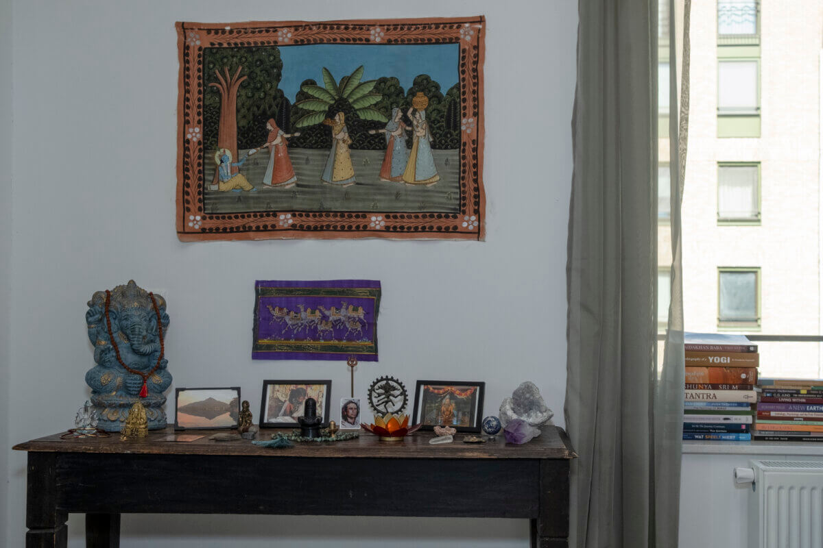 Maar verder is ze gelukkig. Het appartementencomplex is fijn gemengd, ze is de enige witte bewoner op haar verdieping. “Bij ons oude huis op IJburg leek iedereen op elkaar. In de parkeergarage stonden allemaal dezelfde dure auto’s. Zo saai.” Ze komt niet bij haar buren over de vloer, maar ze nemen wel elkaars pakketjes aan en hebben de reservesleutel. “Ik weet nog dat ik na de scheiding bij dit huis ging kijken. Het moest dicht bij ons oude huis zijn, want onze dochter woonde nog thuis. Ik stond in de woonkamer en zag het licht, en het water, en dacht: hier kan ik wel een tijdje zitten. En al helemaal toen ik het huisnummer zag. 750, dat is gewoon een heel mooi getal.”