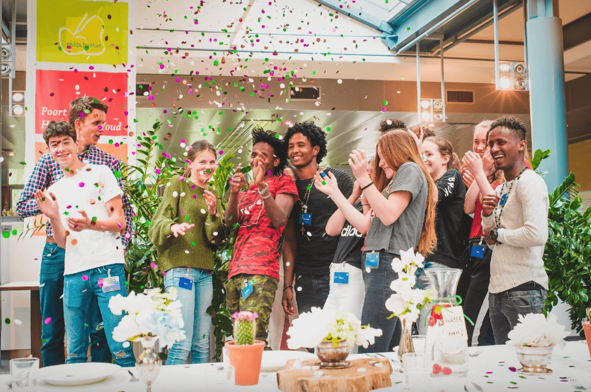 Wat is er leuker op een verjaardagsfeestje dan een mega spel voor de hele jaarlaag? Denk aan een gigantische escape room of een live bordspel! In verschillende klaslokalen gaan teams aan de slag met mini-spellen die Amsterdam in het zonnetje zetten.